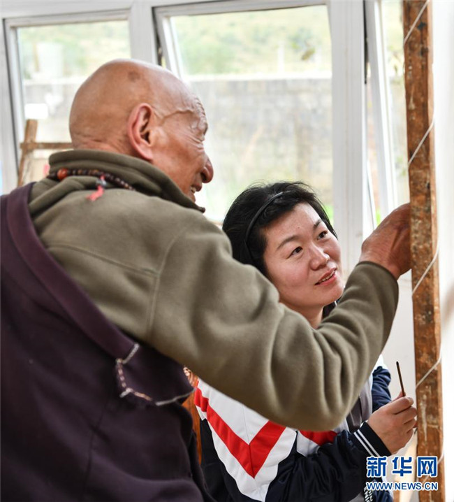 近年來,西藏大力發(fā)展現(xiàn)代職業(yè)教育,為打贏脫貧攻堅(jiān)戰(zhàn)提供了技能保障。作為非物質(zhì)文化遺產(chǎn)傳承人,88歲的嘎瑪?shù)吕赵诓际锌ㄈ魠^(qū)嘎瑪鄉(xiāng)成立了民族手工藝培訓(xùn)基地,使民族手工藝從家族作坊式的生產(chǎn)向集中生產(chǎn)轉(zhuǎn)變。精湛的手工藝品逐漸走出了山溝,也帶動(dòng)群眾走上了致富路。目前,嘎瑪?shù)吕展灿袑W(xué)員460名,其中112名曾是建檔立卡貧困戶,去年人均年收入達(dá)到20萬元左右。新華社記者 普布扎西 攝