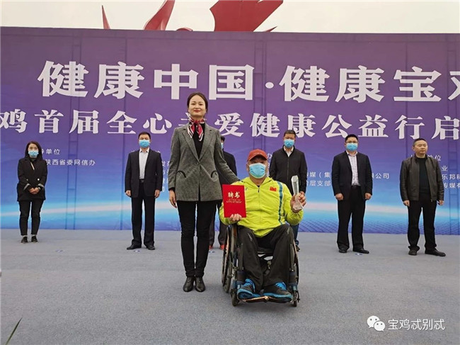 啟動儀式上,寶雞籍殘奧會鐵餅冠軍范良受聘擔(dān)任本次健康公益行形象大使,他曾代表中國出戰(zhàn)2004雅典殘奧會,2008北京殘奧會,2012年倫敦殘奧會,兩次以優(yōu)異的成績獲得金牌,并打破世界紀(jì)錄,為中國人民贏得了榮譽。其中,2004雅典殘疾人奧運會、2008北京殘奧會鐵餅金牌得主。退役后帶領(lǐng)寶雞地區(qū)殘疾人創(chuàng)業(yè),一直致力于公益事業(yè)發(fā)展。