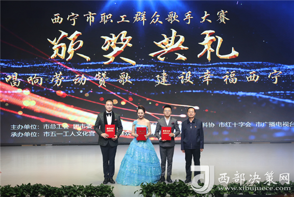 西部決策網(wǎng)訊 11月13日下午,“中國夢•勞動美——唱響勞動贊歌•建設(shè)幸福西寧”西寧市職工群眾歌手大賽正式落下帷幕,本次比賽由市總工會、團(tuán)市委、市婦聯(lián)、市文聯(lián)、市殘聯(lián)、市工商聯(lián)、市科協(xié)、市紅十字會、市廣播電視臺聯(lián)合主辦,市五一工人文化宮、市職工群眾業(yè)余藝術(shù)團(tuán)承辦,來自全市各行各業(yè)職工群眾代表300余人參加了頒獎典禮。同時頒獎典禮現(xiàn)場采取直播的方式,獲得13.5萬次點擊、4.1萬個點贊。