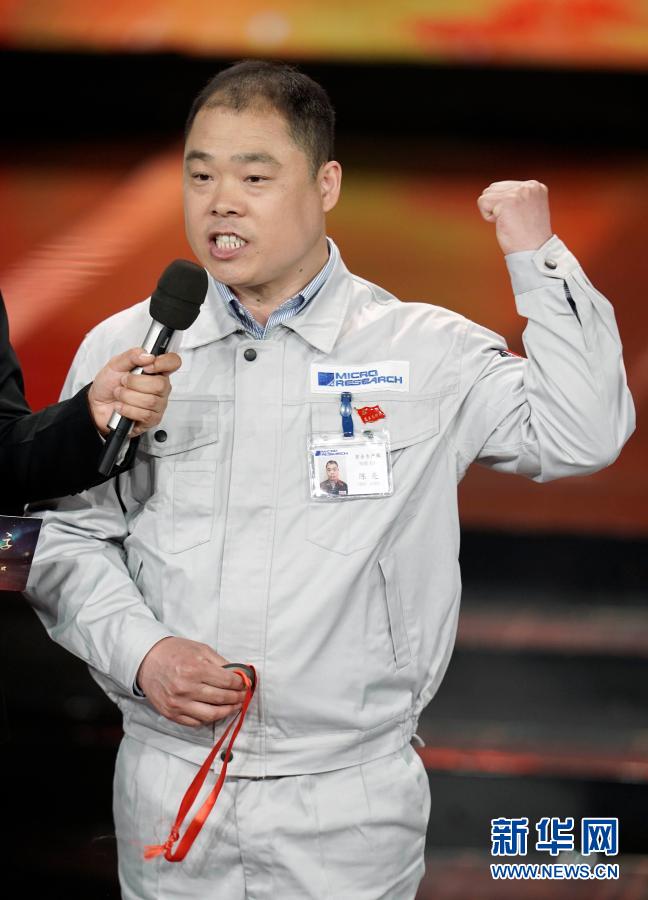 江蘇省無(wú)錫微研股份有限公司高級(jí)技師陳亮在“最美職工”發(fā)布儀式上(2019年4月21日攝)。新華社記者才揚(yáng)攝
