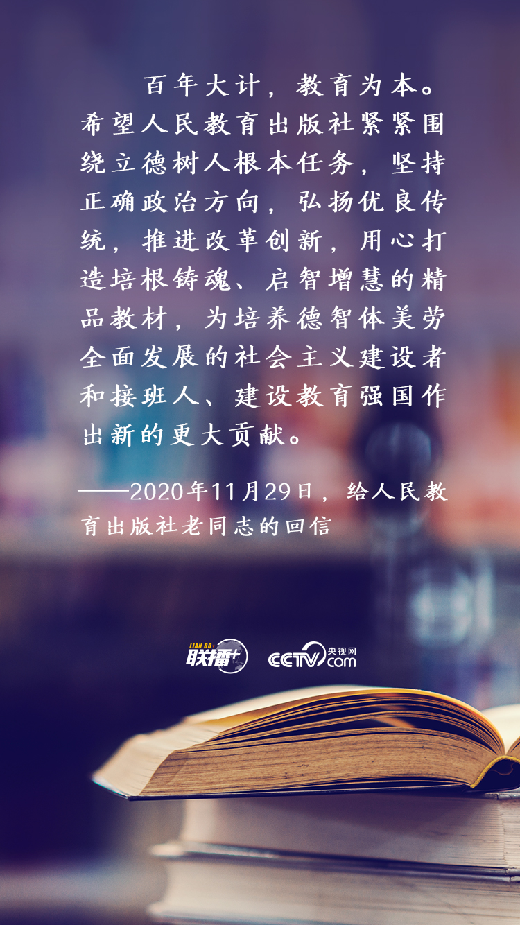 百年大計(jì),教育為本。習(xí)近平總書記一貫高度重視培養(yǎng)社會(huì)主義建設(shè)者和接班人,不止一次對教材編研出版工作提出殷切期望。央視網(wǎng)《聯(lián)播+》為您梳理總書記有關(guān)精彩論述,與您一起學(xué)習(xí)領(lǐng)悟。