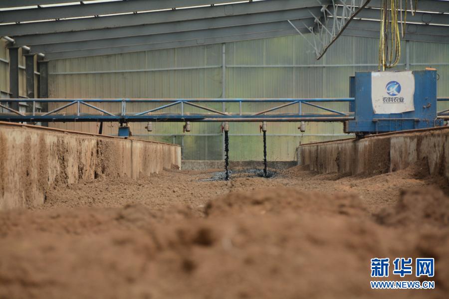在福建省福清市永誠華多種豬公司豬場內,半自動化機械將收集的養(yǎng)殖糞污噴灑至墊料上。這是福建首創(chuàng)的“異位發(fā)酵床”技術,發(fā)酵后的糞污可以作為有機肥源,并可以讓養(yǎng)殖場實現(xiàn)污染“零排放”(2019年8月12日攝)。新華社記者 林超 攝