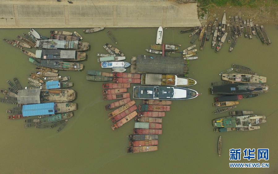 在湖南常德漢壽縣蔣家嘴鎮(zhèn),待回收的鐵漁船??吭诙赐ズ叄?019年12月17日攝,無人機照片)。2020年1月1日零時起,長江流域332個自然保護區(qū)和水產(chǎn)種質資源保護區(qū)全面禁止生產(chǎn)性捕撈。新華社記者 薛宇舸 攝