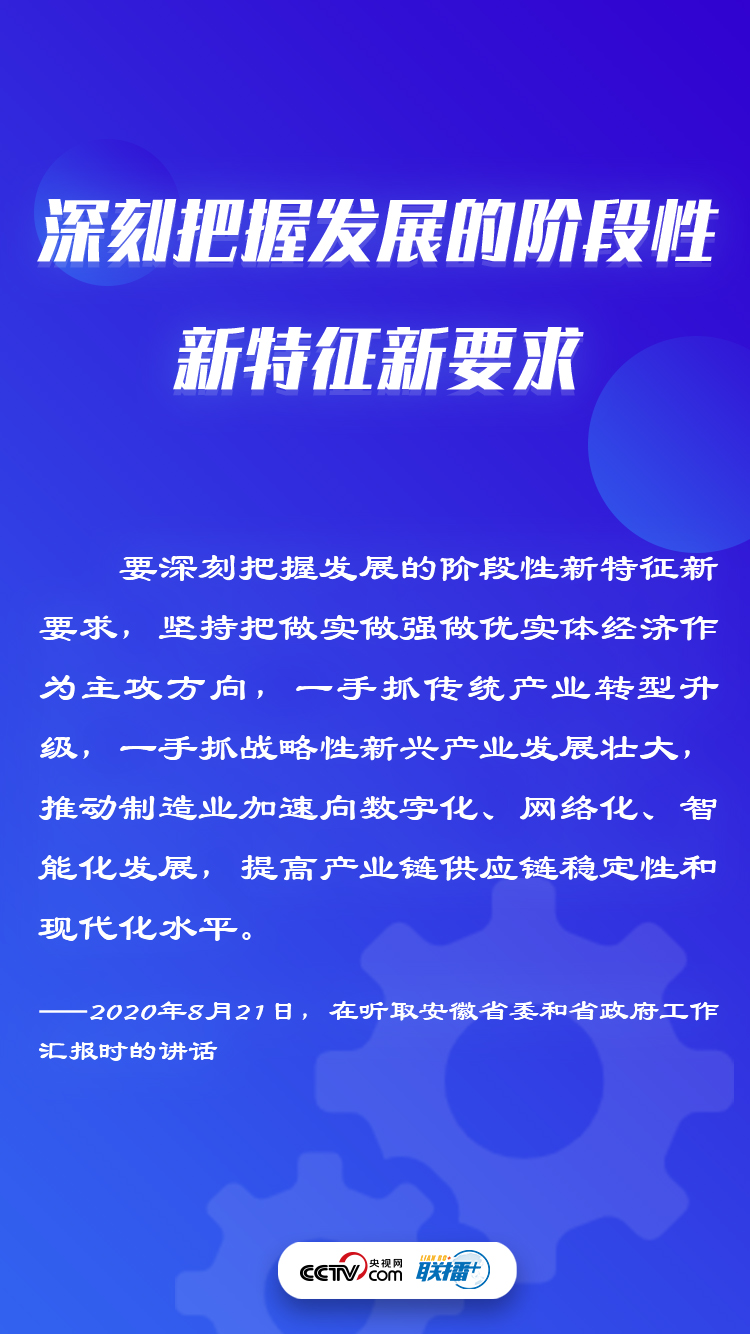 當(dāng)今世界正經(jīng)歷百年未有之大變局,突如其來(lái)的新冠肺炎疫情對(duì)全世界是一次嚴(yán)峻考驗(yàn)。在此情況下,無(wú)論考察調(diào)研,還是重要會(huì)議,習(xí)近平總書記更加重視實(shí)體經(jīng)濟(jì)發(fā)展,多次在不同場(chǎng)合作出重要指示,為實(shí)體經(jīng)濟(jì)的發(fā)展指明方向。央視網(wǎng)《聯(lián)播+》特梳理總書記殷殷囑托,與您一起學(xué)習(xí)領(lǐng)悟。