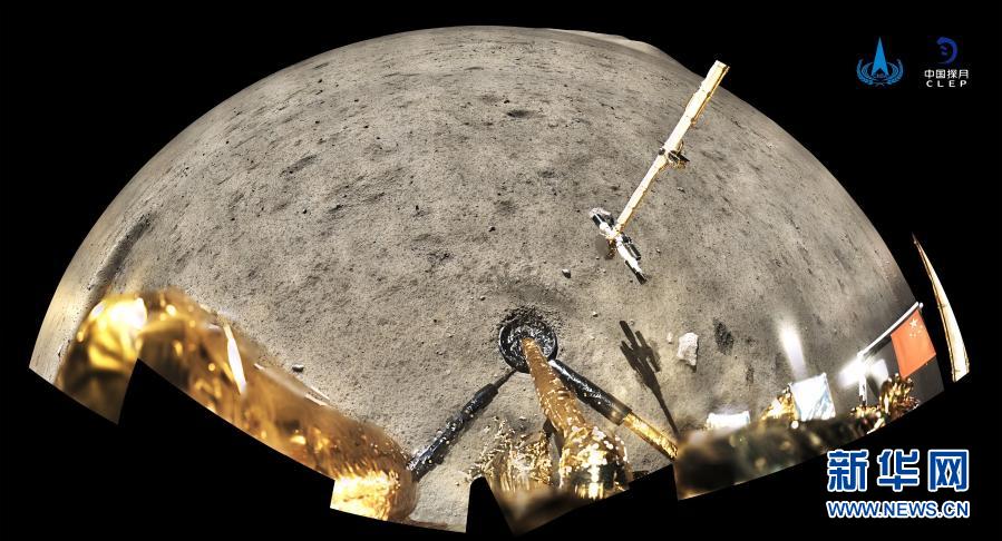 12月4日,國家航天局公布了探月工程嫦娥五號探測器在月球表面國旗展示的照片。嫦娥五號著陸器和上升器組合體全景相機(jī)環(huán)拍成像,五星紅旗在月面成功展開,此外圖像上方可見已完成表取采樣的機(jī)械臂及采樣器。新華社發(fā)(國家航天局供圖)