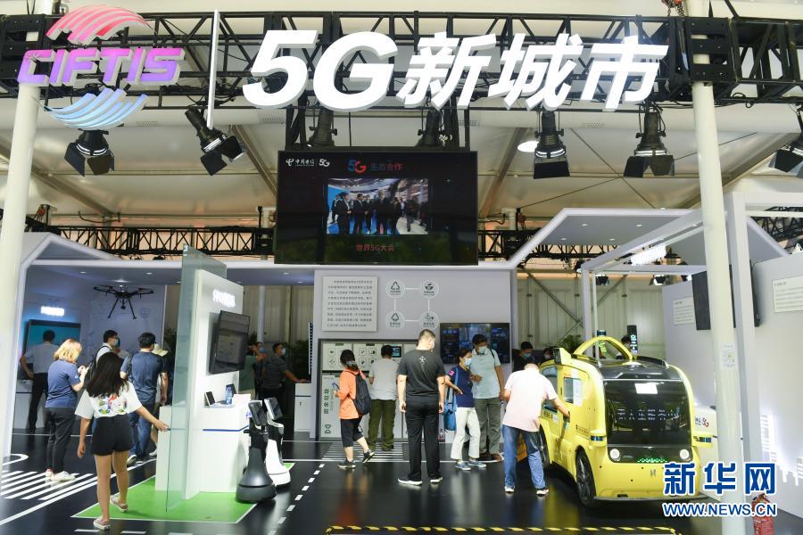9月7日,觀眾在2020年中國國際服務(wù)貿(mào)易交易會(huì)5G通信服務(wù)專題展區(qū)參觀。2020年中國國際服務(wù)貿(mào)易交易會(huì)9月4日至9日在北京舉行。新華社記者 魯鵬 攝