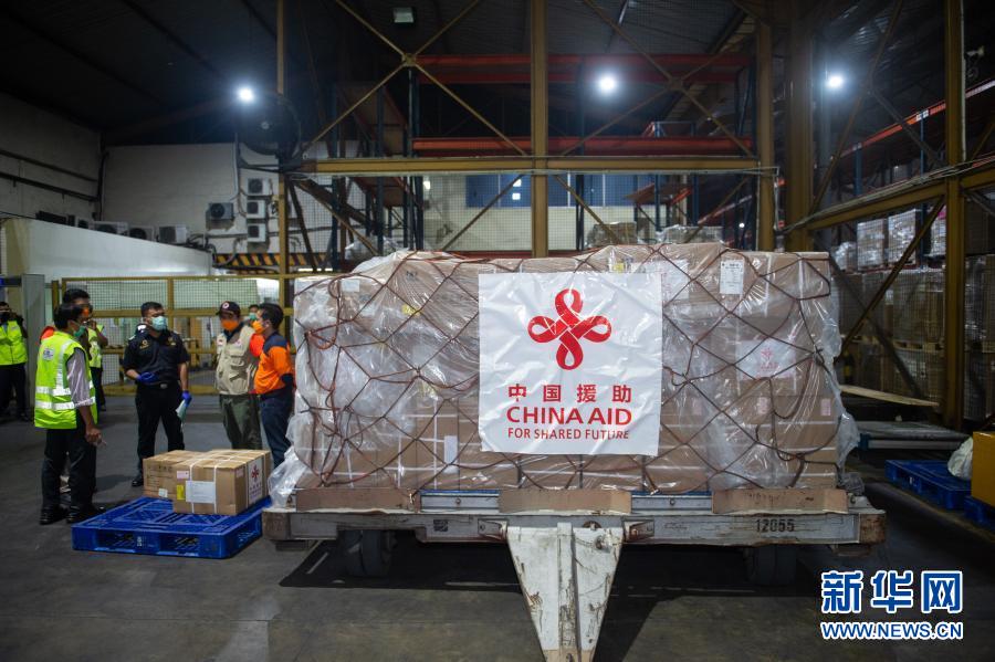 3月26日,中國援助印度尼西亞的首批抗疫物資停放在雅加達(dá)蘇加諾哈達(dá)機(jī)場倉庫。新華社記者 杜宇 攝