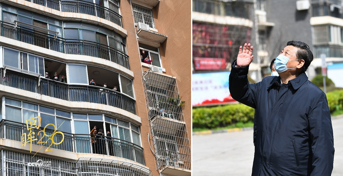 樓上,居家隔離的群眾望向窗外,有的搖著國(guó)旗高呼:“中國(guó)加油!武漢加油!”樓下,習(xí)近平總書(shū)記不時(shí)駐足,微笑著向大家揮手致意:“大家一起加油,再堅(jiān)持一下!”目光中飽含關(guān)切。
