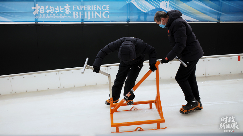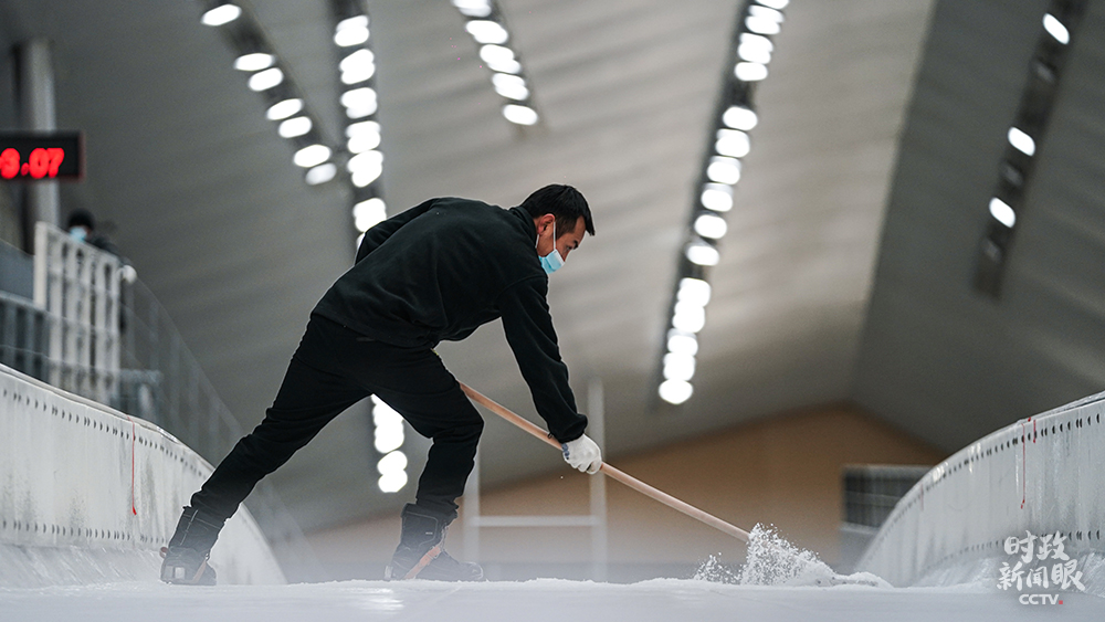 △國(guó)家雪車雪橇中心,制冰師對(duì)賽道冰面做精細(xì)修整。(總臺(tái)國(guó)廣記者李晉拍攝)
