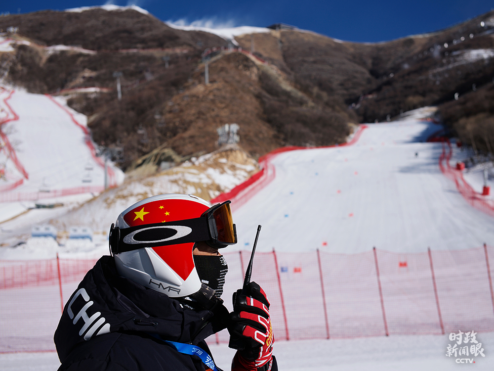 △延慶賽區(qū)高山滑雪中心,為完成賽道造雪任務(wù),山地運(yùn)行團(tuán)隊(duì)前后投入150余臺(tái)造雪機(jī),27臺(tái)壓雪車24小時(shí)不間斷作業(yè)。這是山地運(yùn)行負(fù)責(zé)人吳高勝在指揮工作。(總臺(tái)央視記者王哈男拍攝)