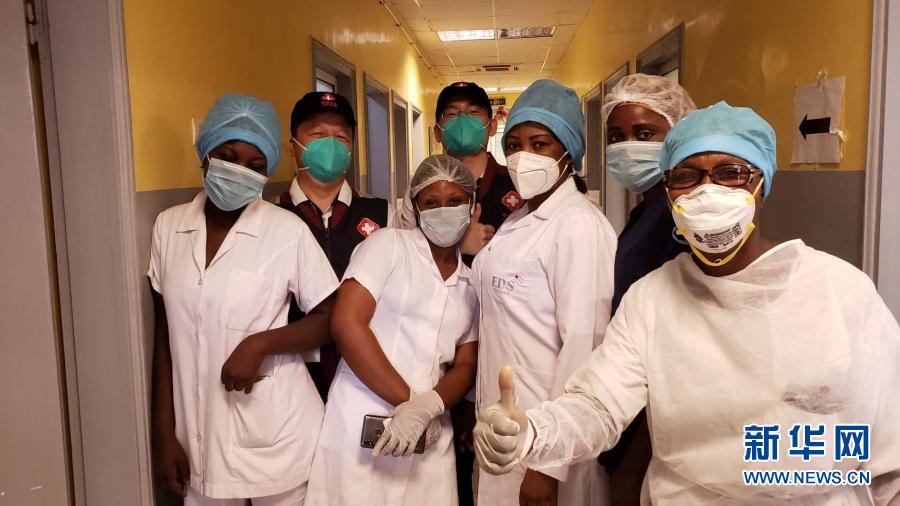 2020年5月26日,中國抗疫醫(yī)療專家組在剛果(布)首都布拉柴維爾指導(dǎo)新冠肺炎病房建設(shè)時,與當?shù)匾痪€醫(yī)務(wù)人員合影。新華社發(fā)