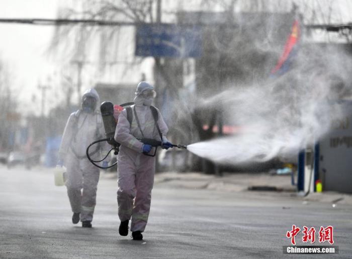 1月15日,石家莊消防救援支隊(duì)藁城大隊(duì)消防員在小果莊村村口路段消殺。當(dāng)日,河北省石家莊市藁城區(qū)開(kāi)展防疫消殺工作。 中新社記者 翟羽佳 攝
