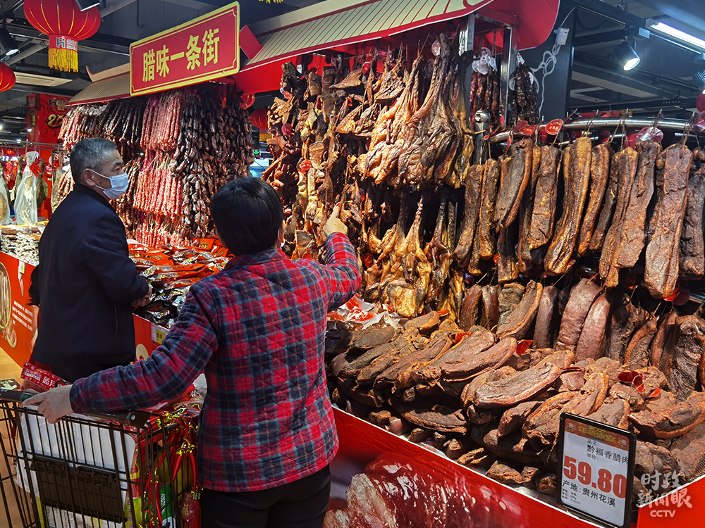 △超市內(nèi)“臘味一條街”(總臺(tái)央視記者史偉拍攝)