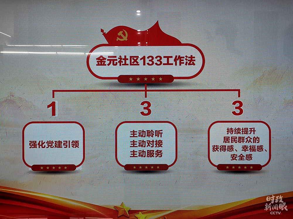 △金元社區(qū)的“133工作法”,“1”是強(qiáng)化黨建引領(lǐng),第一個(gè)“3”是社區(qū)工作要“主動(dòng)聆聽、主動(dòng)對接、主動(dòng)服務(wù)”。(總臺(tái)央視記者楊立峰拍攝)