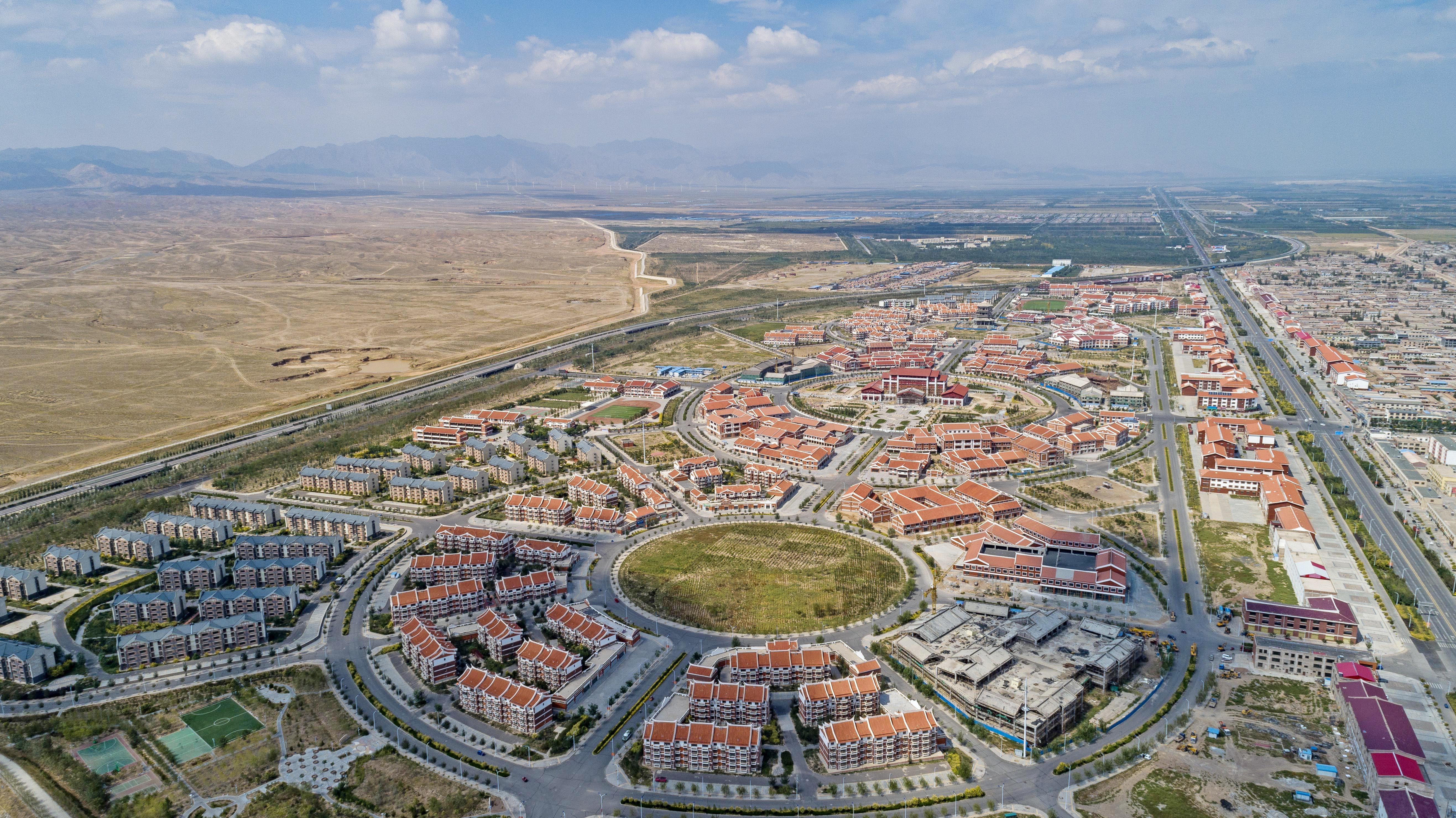 這是2019年9月3日拍攝的寧夏銀川市永寧縣閩寧鎮(zhèn)新鎮(zhèn)建設(shè)全景(無人機照片)。新華社記者 王鵬 攝