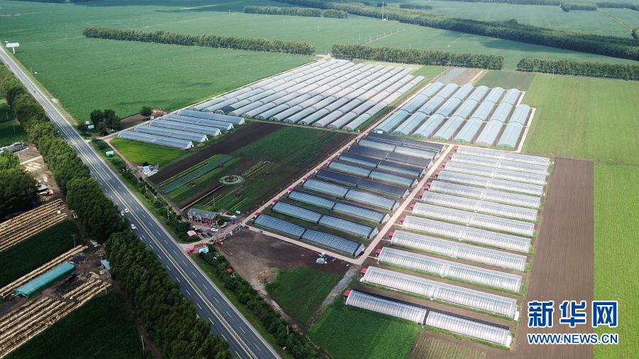 帶動(dòng)脫貧戶就業(yè)的黑龍江省肇東市黎明鎮(zhèn)甜嫂創(chuàng)意休閑農(nóng)業(yè)園區(qū)全貌(無(wú)人機(jī)照片,2020年7月6日攝)。新華社記者 王建威 攝