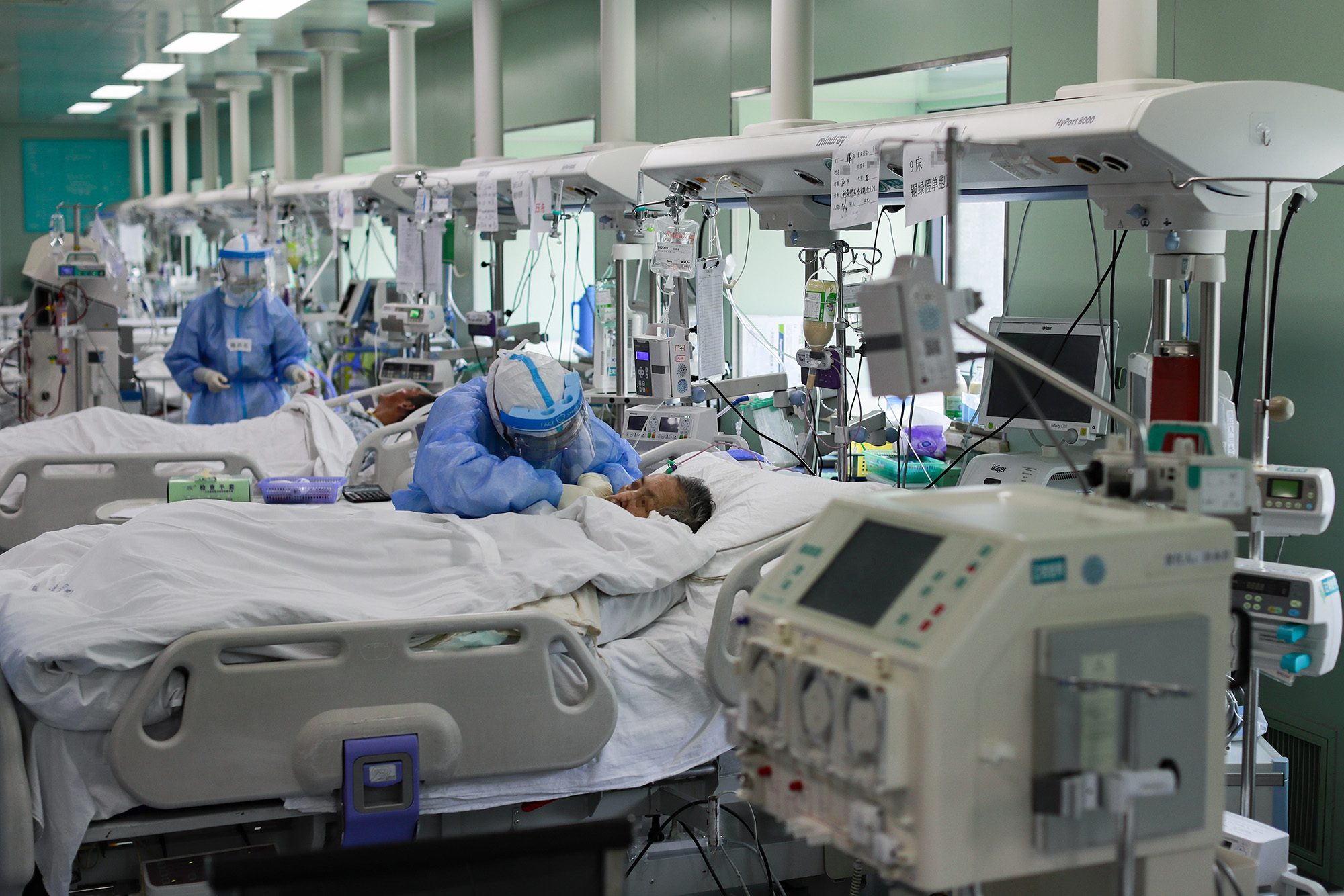 ↑2020年4月24日,在位于武漢的華中科技大學(xué)同濟(jì)醫(yī)學(xué)院附屬協(xié)和醫(yī)院西院,醫(yī)務(wù)人員在護(hù)理核酸檢測(cè)結(jié)果轉(zhuǎn)陰的新冠肺炎病人。