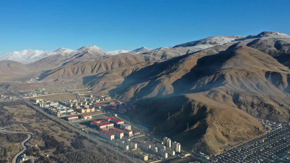 ↑ 圖為2021年3月10日拍攝的玉樹市一角(地震時(shí)為扎西科臨時(shí)安置點(diǎn))。