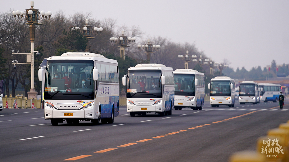△代表團(tuán)乘車返回駐地。(總臺國廣記者李晉拍攝)