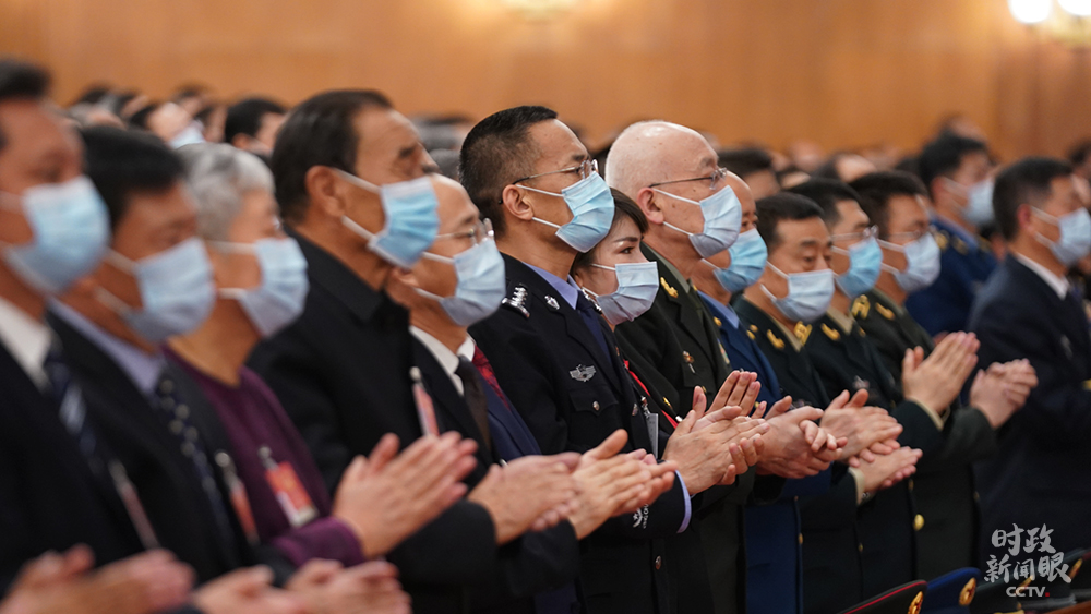 △閉幕會上,習(xí)近平等黨和國家領(lǐng)導(dǎo)人步入會場時,全場起立鼓掌。(總臺國廣記者李晉拍攝)
