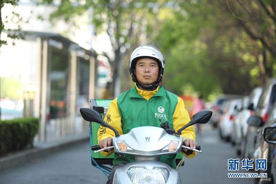 美團買菜駐站配送員李海剛在給附近居民區(qū)送菜途中 (資料照片)。新華社發(fā)