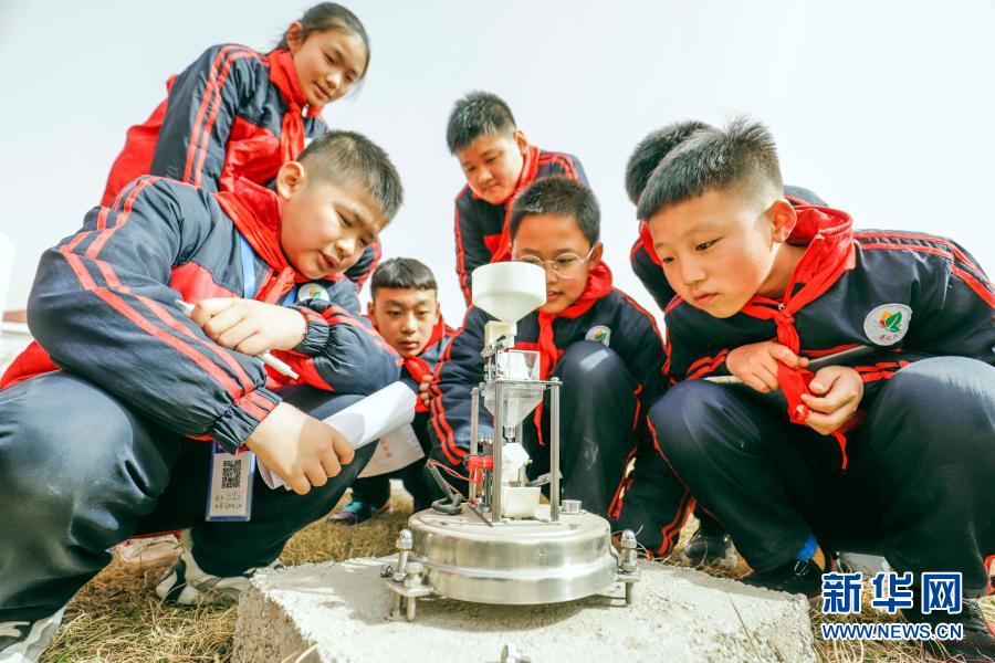 3月22日,河北省柏鄉(xiāng)縣南關小學的學生在學習氣象知識。新華社發(fā)(李雪其 攝)