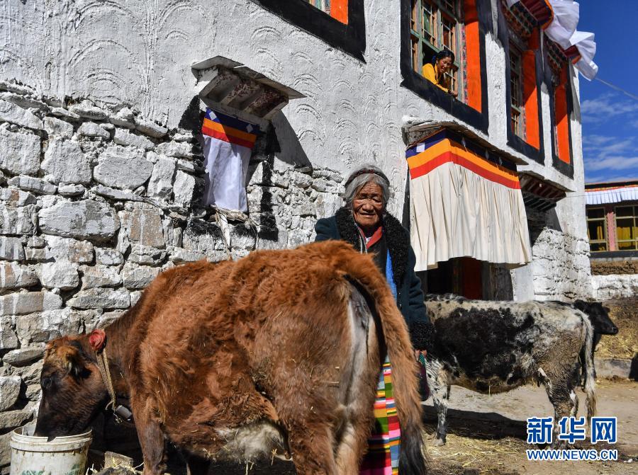片多在家里喂牛(1月15日攝)。新華社記者 晉美多吉 攝