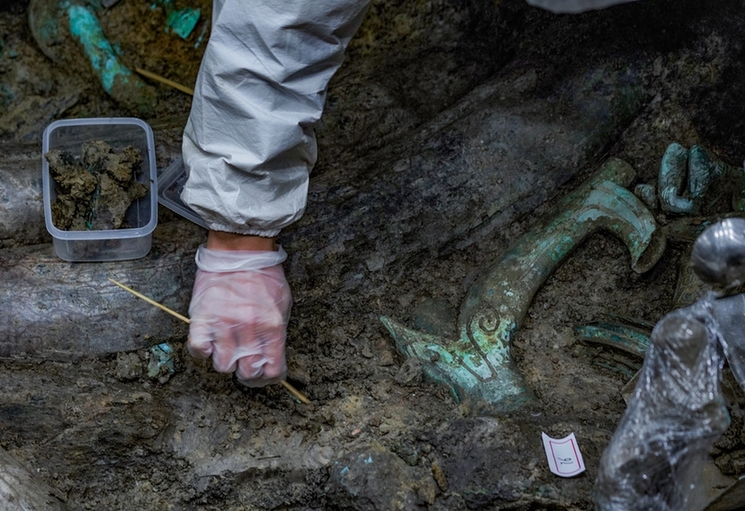 劉槃?wù)f,在初二時,她看了一本歷史探險科普書,書中主角是聯(lián)合國教科文組織的考古學(xué)者。那時候,她就在心中種下了一顆考古學(xué)的種子。心之所向,素履以往,在矢志不渝的堅持中與命運機(jī)緣的巧合下,劉槃進(jìn)入了四川大學(xué)考古學(xué)專業(yè),從湖南來到了成都。劉槃曾經(jīng)以為,考古是“停橈問土風(fēng)”般的工作,在這片廣袤的神州大地上,尋找著被歷史湮沒的古代文明。然而,正式接觸到考古以后,劉槃覺得這個行業(yè)更偏積累與腳踏實地。下野外是種積累,在長期的整理工作中更考驗的是扎實的功底。劉槃的老師告訴她,考古從業(yè)者一生中能遇上一個成果輝煌的考古發(fā)現(xiàn)是挺難的一件事,得看運氣。而劉槃是幸運的,正讀大四的她,目前正在此次世紀(jì)大發(fā)掘現(xiàn)場擔(dān)任記錄工作。劉槃所在的三號艙,有三個坑同時在發(fā)掘,擔(dān)任記錄員的她,在每一天的工作中都能接觸到不同的專家與學(xué)者,傾聽并記錄一些新現(xiàn)象、新方法,在這同時,她也吸收到很多新的知識,每一天都過得快樂而充實。
