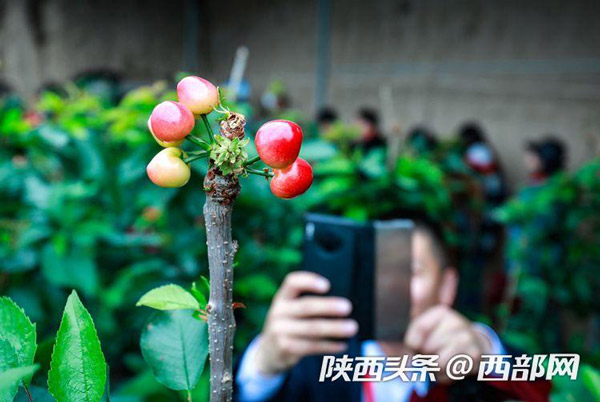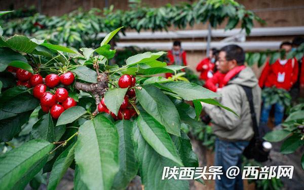 在櫻桃棚內,紅色的櫻桃一簇一簇簇擁在樹上,在綠油油的樹葉間顯得嬌艷欲滴。路寶告訴記者,子長的櫻桃可以趕在其他產地的櫻桃未上市前售賣,因此市場行情好,加上保存期長,適合現(xiàn)代物流的發(fā)展,從而產生了比較好的收益。“我們這個櫻桃可以在其他櫻桃還沒有上市的時候,借助現(xiàn)代物流賣到全國各地,甚至可以賣到櫻桃的主產區(qū)去。”