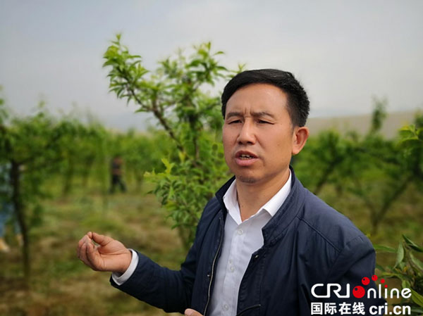 金葉騰種植基地負責人葉友誼在果園內(nèi)介紹情況 攝影:黎萌