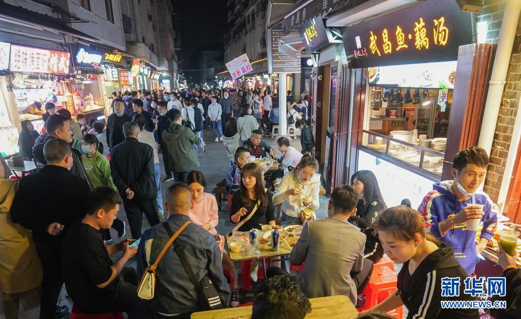 3月28日,人們在武漢市著名的小吃街戶部巷休閑消費(fèi)。新華社記者 程敏 攝