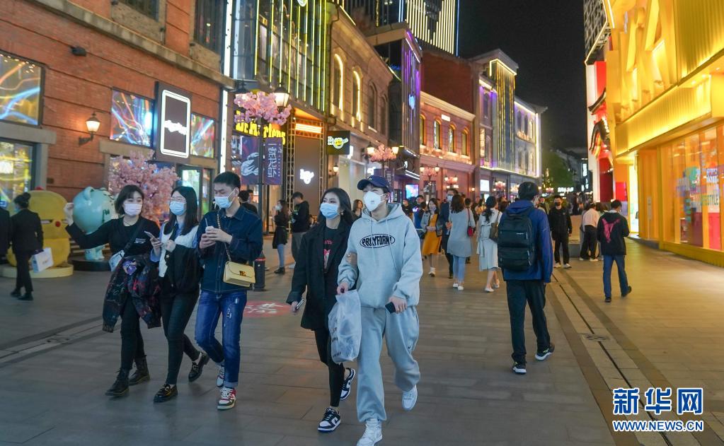 3月28日,人們在武漢市楚河漢街游玩。新華社記者 程敏 攝