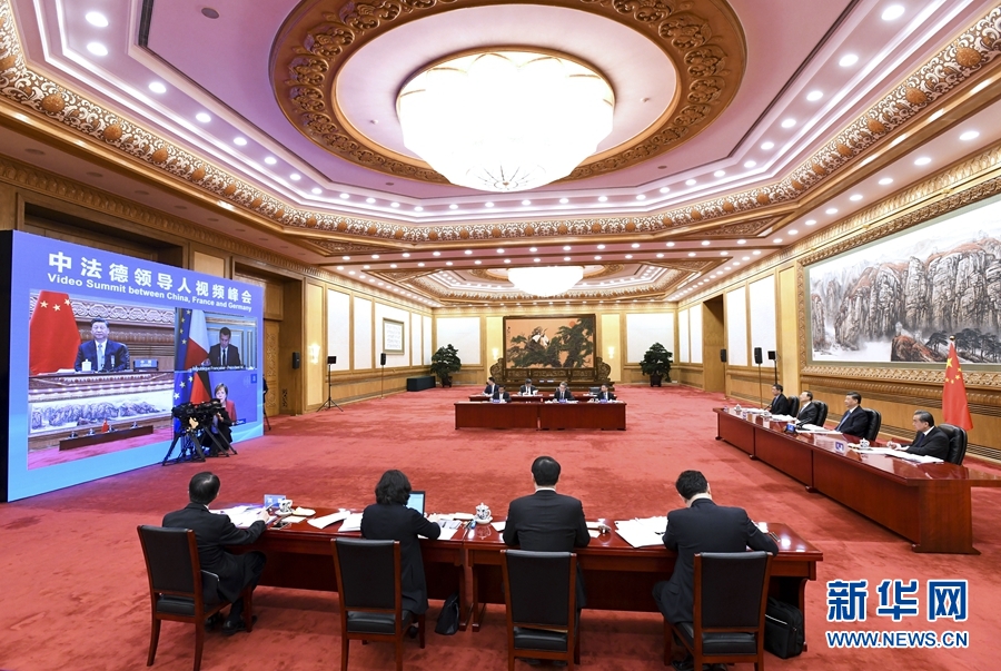 新華社北京4月16日電 4月16日下午,國(guó)家主席習(xí)近平在北京同法國(guó)總統(tǒng)馬克龍、德國(guó)總理默克爾舉行中法德領(lǐng)導(dǎo)人視頻峰會(huì)。三國(guó)領(lǐng)導(dǎo)人就合作應(yīng)對(duì)氣候變化、中歐關(guān)系、抗疫合作以及重大國(guó)際和地區(qū)問(wèn)題深入交換意見(jiàn)。