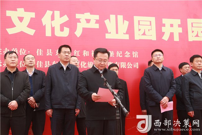 今年是中國共產(chǎn)黨建黨100周年,今天是佳縣東方紅文化產(chǎn)業(yè)園盛大開園,標志著佳縣在打造紅色文化旅游龍頭景區(qū)、創(chuàng)建國家全域旅游示范縣邁出了堅實的步伐。
