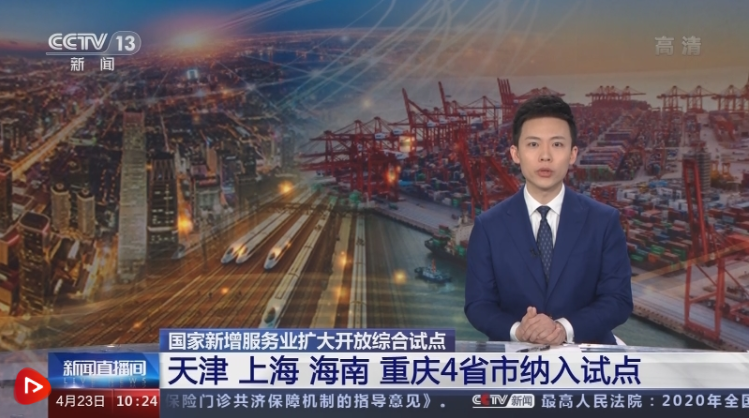 央視網(wǎng)消息:商務(wù)部今天(4月23日)舉行專題新聞發(fā)布會(huì),外資司有關(guān)負(fù)責(zé)人介紹,在支持北京建設(shè)國家服務(wù)業(yè)擴(kuò)大開放綜合示范區(qū)的同時(shí),日前,國務(wù)院批復(fù)同意將天津、上海、海南、重慶4省市納入服務(wù)業(yè)擴(kuò)大開放綜合試點(diǎn)。