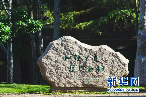 清華園內(nèi)刻有校訓的巨石。清華大學供圖
