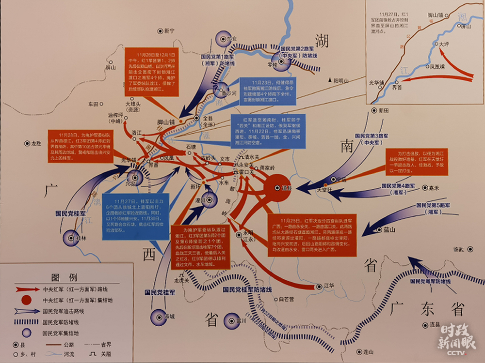 △湘江戰(zhàn)役形勢(shì)示意圖(總臺(tái)央視記者馬立飛拍攝)