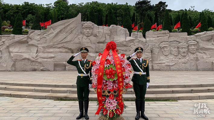 25日上午,總書(shū)記向湘江戰(zhàn)役紅軍烈士敬獻(xiàn)花籃,并參觀了紅軍長(zhǎng)征湘江戰(zhàn)役紀(jì)念館。