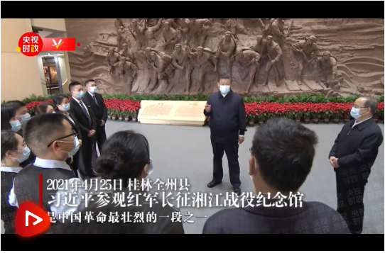 4月25日上午,習(xí)近平首先來(lái)到桂林市全州縣才灣鎮(zhèn),考察紅軍長(zhǎng)征湘江戰(zhàn)役紀(jì)念園。