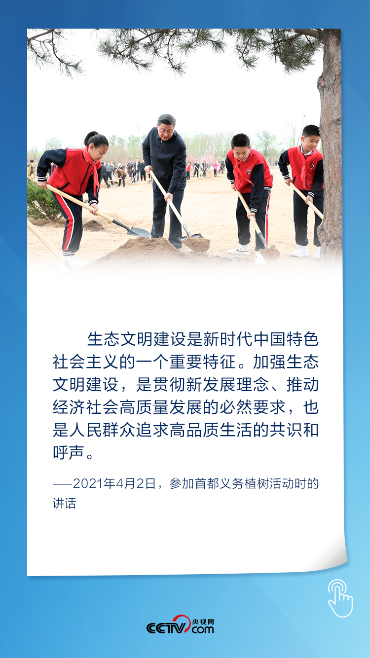 建設(shè)生態(tài)文明,關(guān)系人類福祉,關(guān)乎民族未來(lái)。新發(fā)展階段,堅(jiān)持推進(jìn)生態(tài)文明建設(shè),堅(jiān)持綠色發(fā)展,是中國(guó)新發(fā)展格局下推動(dòng)高質(zhì)量發(fā)展、創(chuàng)造高品質(zhì)生活的戰(zhàn)略需要。本月,習(xí)近平總書(shū)記連續(xù)第九年參加首都義務(wù)植樹(shù)活動(dòng),栽下一株株小樹(shù)苗,厚“植”綠色期望;同法國(guó)德國(guó)領(lǐng)導(dǎo)人舉行視頻峰會(huì),再次宣布碳達(dá)峰、碳中和目標(biāo);出席領(lǐng)導(dǎo)人氣候峰會(huì),首次提出“共同構(gòu)建人與自然生命共同體”;考察廣西時(shí)遠(yuǎn)眺桂林山水,囑托呵護(hù)好“大自然賜予中華民族的一塊寶地”。一步一履、一言一行,總書(shū)記為中國(guó)高質(zhì)量發(fā)展、人類與自然和諧共生標(biāo)定綠色方向。