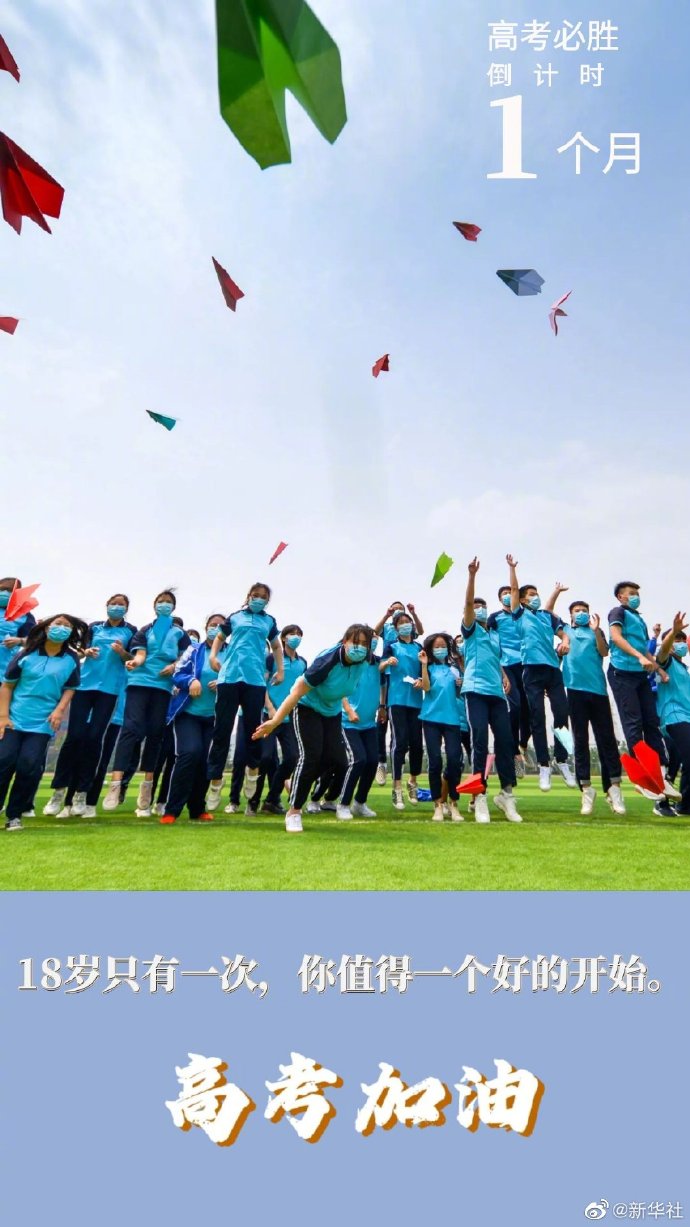 還有一個(gè)月,少年們就要奔赴高考考場。不必害怕,不必焦慮,要相信含淚播種的人一定會(huì)含笑收獲。乾坤未定,珍惜當(dāng)下的每分每秒。希望當(dāng)你回首這段時(shí)光時(shí),會(huì)感謝那個(gè)奮力拼搏永不放棄的自己。不要給青春留下遺憾,每一個(gè)全力追夢的你都精彩!(海報(bào)設(shè)計(jì):陳露緣)