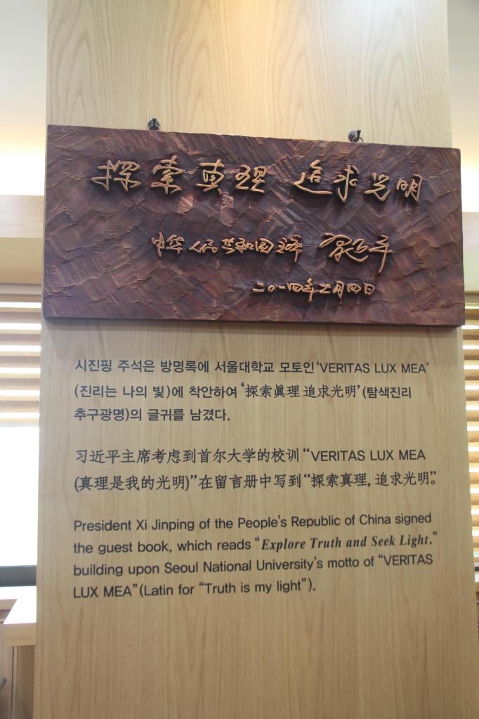 這是習(xí)近平主席給首爾大學(xué)的親筆題詞。