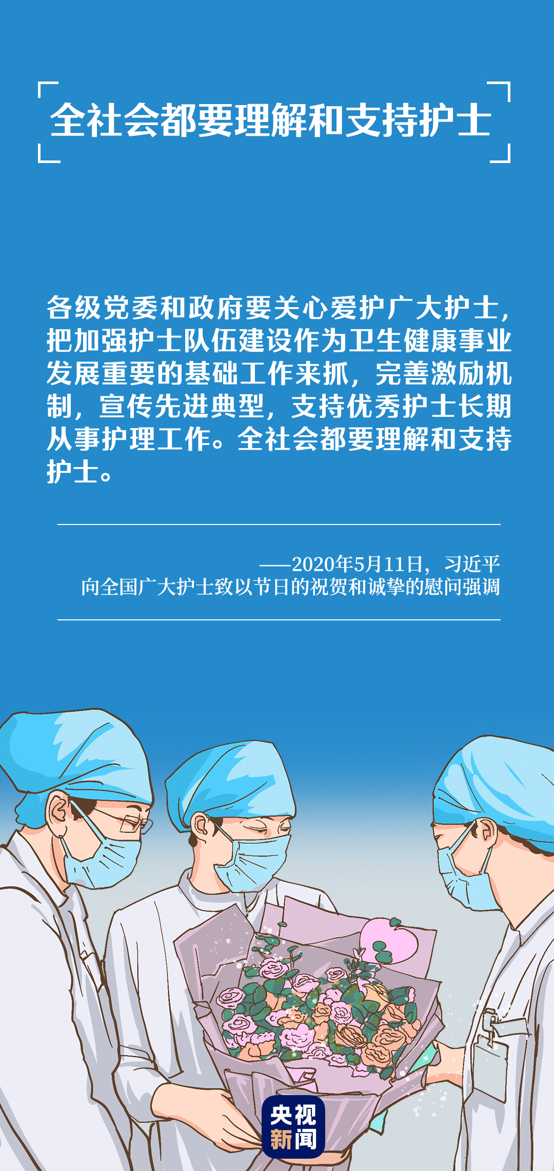 習(xí)近平總書(shū)記十分關(guān)心護(hù)士群體,要求各級(jí)黨委和政府關(guān)心愛(ài)護(hù)廣大護(hù)士,全社會(huì)都要理解和支持護(hù)士。