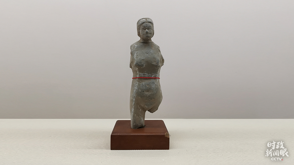 △東漢針灸女陶人。身高24厘米,胸寬7厘米。陶人造型質(zhì)樸,渾身遍布排列成行的針灸穴位,具有極高的學(xué)術(shù)價值。(總臺央視記者馬超拍攝)