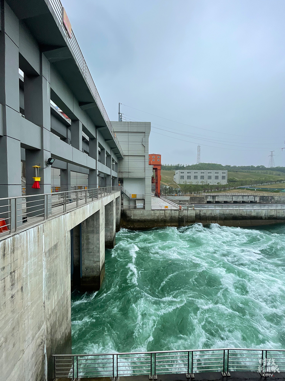 △陶岔渠首水利樞紐工程大壩長(zhǎng)265米,引水閘分3孔、閘總寬31米。(總臺(tái)國(guó)廣記者李晉拍攝)