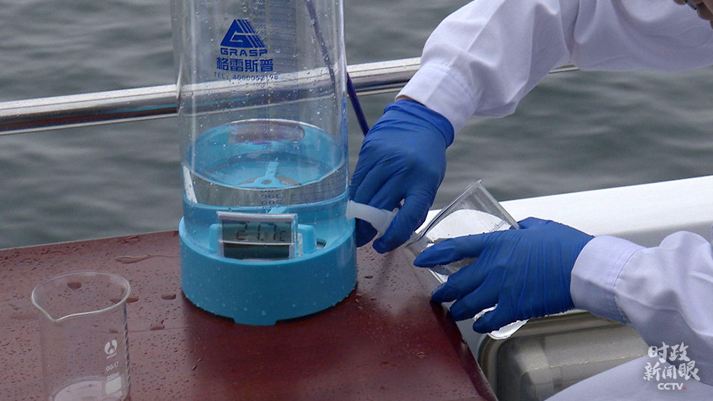 △這是考察當(dāng)天,現(xiàn)場(chǎng)從丹江口水庫(kù)取出的水樣。(總臺(tái)央視記者李錚拍攝)
