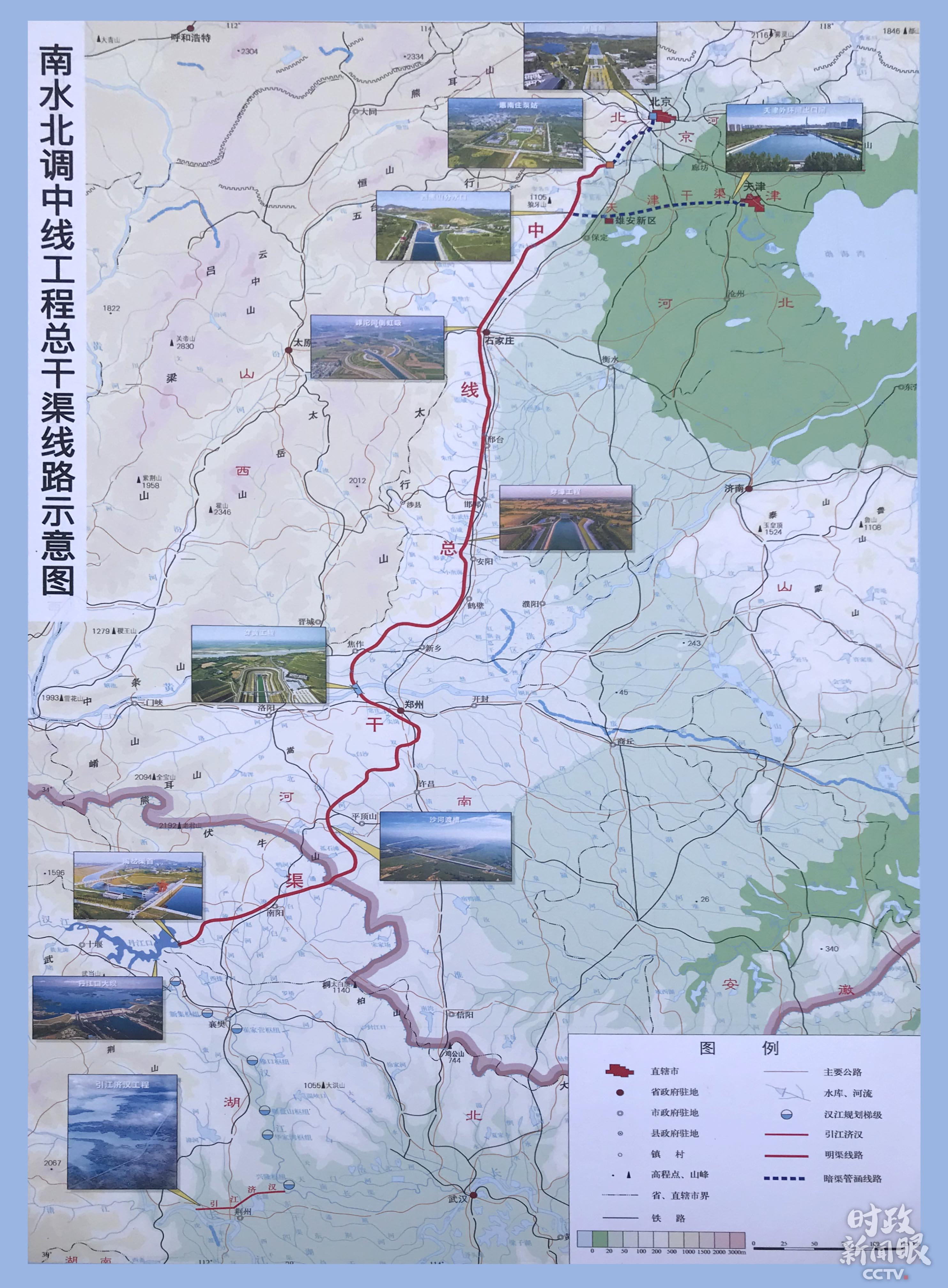 △南水北調(diào)中線工程總干渠路線圖(總臺(tái)央視記者石偉明拍攝)