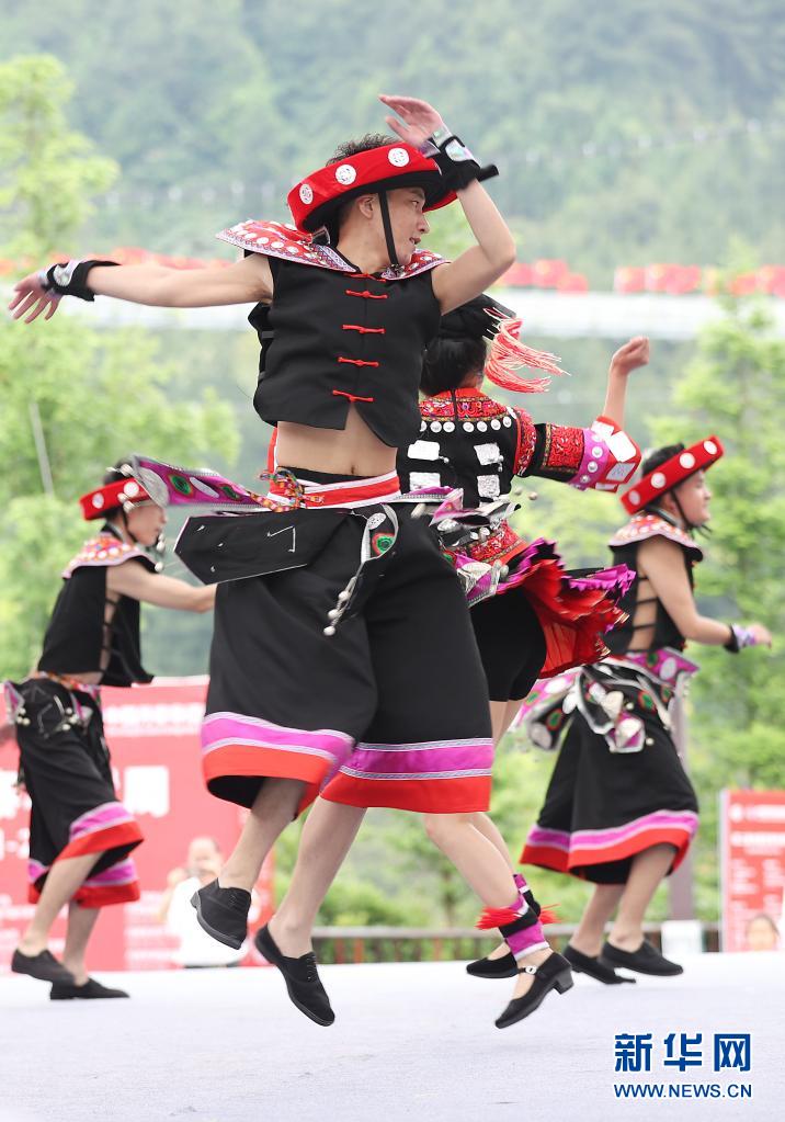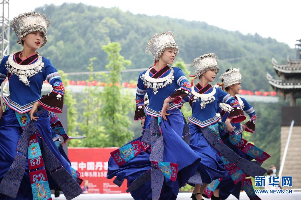5月16日,演員在丹寨縣萬(wàn)達(dá)小鎮(zhèn)非遺歌舞展演活動(dòng)上表演苗族木鼓舞。新華社發(fā)(黃曉海 攝)