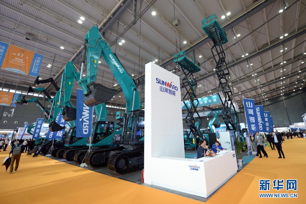 5月19日,觀眾在2021長沙國際工程機(jī)械展覽會(huì)山河智能展區(qū)參觀。新華社記者 陳振海 攝