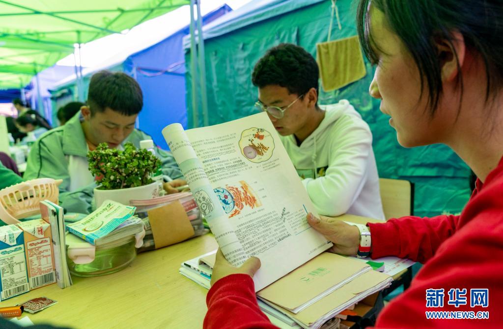 目前,高三學生們住在20頂帳篷里,已運來的12頂大帳篷正在搭建,準備作為高三的新“課堂”。漾濞一中副校長馬雙權說,“為了高三的周一上課,我們全力做好各項保障服務。我們在高三年級同學上課前還進行了安全、健康、思政‘三課’,特別請心理醫(yī)生對學生們進行了心理輔導教育。”
